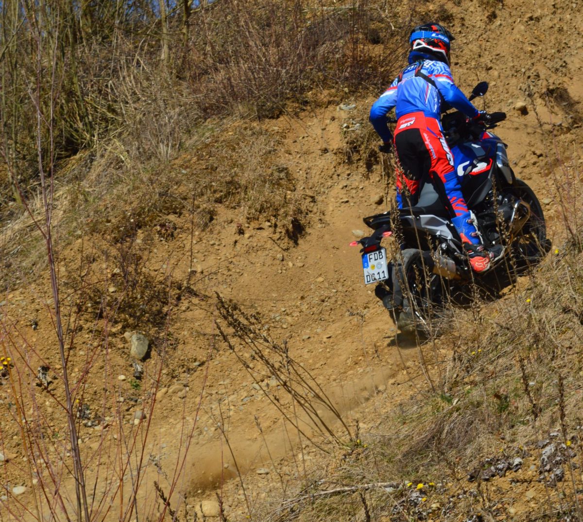 Wir empfehlen eine Offroad-Ausrüstung, die folgende Elemente umfasst: robuste Offroad-Motorradstiefel, einen geschlossenen Offroad-Helm, Protektoren sowie einen Enduro-Textilanzug bestehend aus Hose, Jacke oder einer Shirt-Kombination.