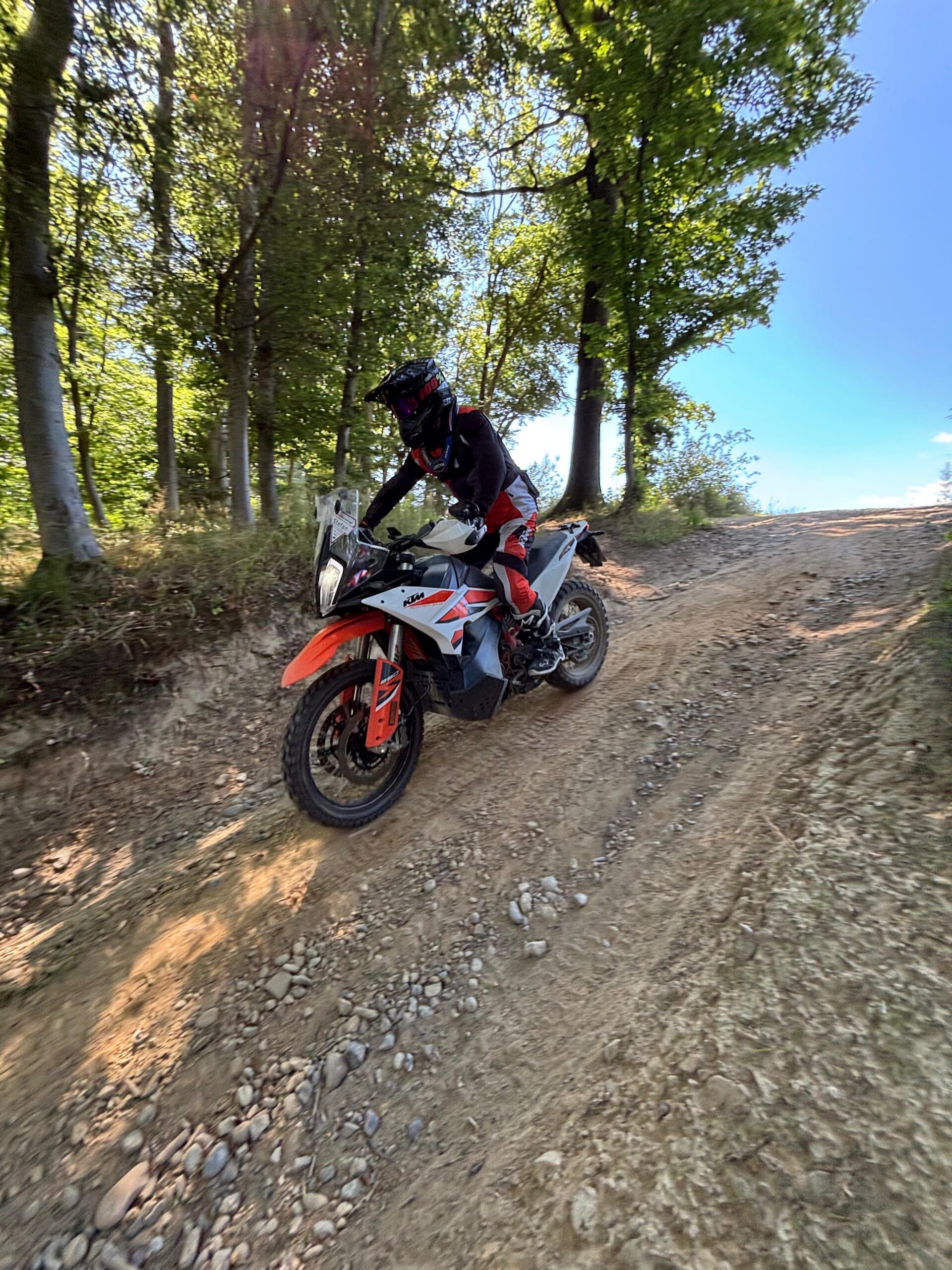 Für unser Advanced Training sind Straßenreifen ausreichend – Du kannst also direkt mit Deinem Alltags-Setup starten. Ab dem Advanced Training empfehlen wir jedoch 50/50-Adventure-Reifen für mehr Grip und Kontrolle im Gelände.